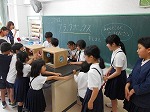 5月17日(金)1年生を迎える会をしました。児童会では「新聞のりゲーム」と「伝言ゲーム」を、児童会を除く6年生では学校ウォークラリーを企画しました。学校ウォークラリーは1年生に楽しんでもらうだけでなく、学校のことを知ってもらえるように、いろんな教室の中にゲームを用意しました。最後に手作りのしおりを1年生にプレゼントしました。運営をした6年生自身が「楽しみながら進められた」と達成感を感じていました。