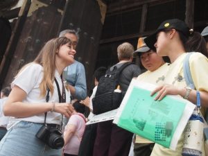 5月29日 校外学習 in 奈良 投稿日時: 2019年6月2日 投稿者: furuicihp 5月29日(水)校外学習で奈良の古都を味わいに行きました。奈良時代に栄えた平城京跡や東大寺などの歴史的な文化財を巡りました。また、外国人インタビューも行い、勇気を出して声をかけました。奈良公園の鹿たちを目の当たりにして、その多さに驚いていました。