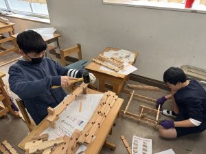 二学期に引き続き、バイオマス丹波篠山より前川さんを講師に招き、木工体験学習を行いました。